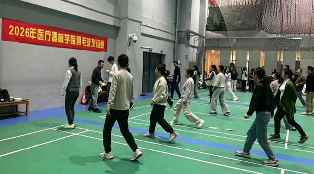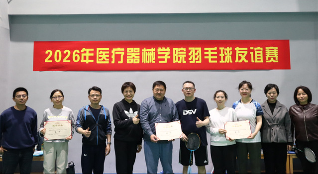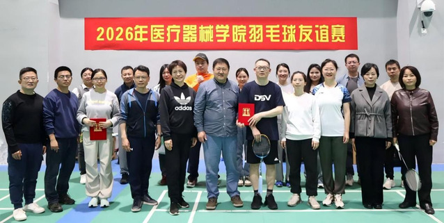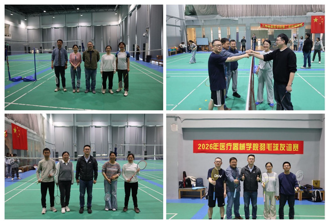 4月23日下午,医疗器械学院“2026年度教职工羽毛球友谊赛”在东苑羽毛球场热烈举行。本次比赛旨在丰富学院教职工的文体生活,增进各教研室之间的交流与凝聚力,得到了全院教职员工的积极响应。来自学院七个教研室的14名教师代表齐聚赛场,以球会友,切磋技艺,展现了我院教师队伍昂扬向上的精神风貌。