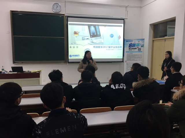 2月23日下午,柯渡医学科技股份有限公司校园招聘专场宣讲会在新南苑北区103教室举行,柯渡医学人力资源部经理邵碧波一行5人到校宣讲并进行现场招聘。本次宣讲会吸引了来自毕业班100多位同学积极参加,有60多位同学进入了公司组织的现场笔试、面试环节,当天即现场录用了11位同学。