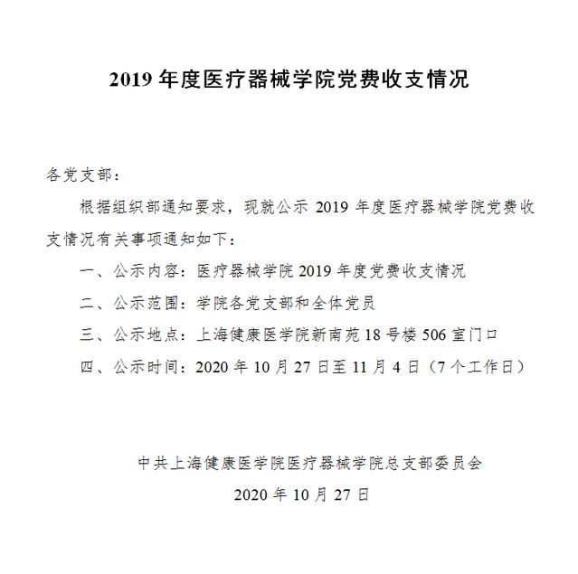 2019年度医疗器械学院党费收支情况