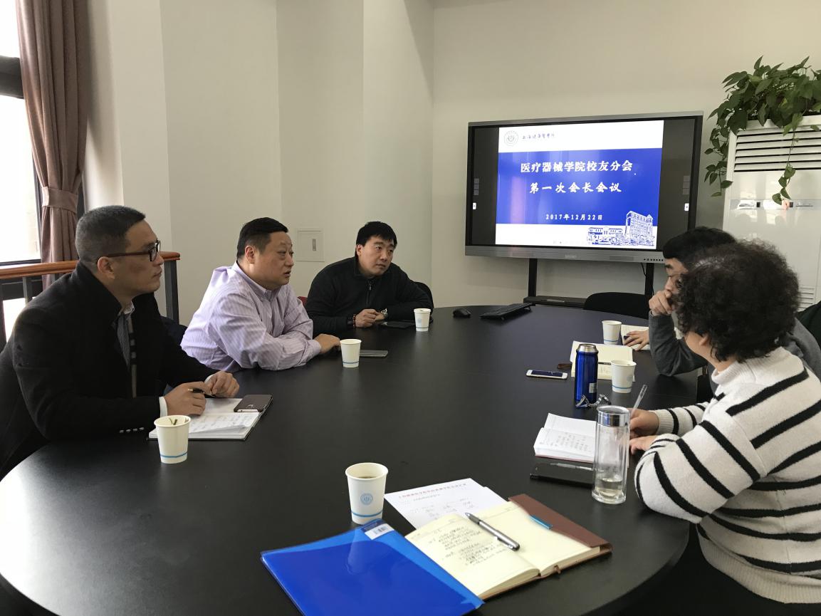 张坚会长指出,医疗器械学院校友分会要在学校校友会和学院领导的指导下开展校友工作,当务之急是制定校友分会章程,制定规划,确定近期、远期目标,带领校友们围绕分会愿景努力工作。会上,会长们讨论确定了下次理事会主要议题和内容,研究明确了医疗器械学院校友分会章程、校友分会2018年度工作计划等问题。大家纷纷表示,以后积极向学院推荐医疗器械行业相关学科带头人或领军人物,推进学院高端人才引进工作;建立杰出校友专家资源库,定期举办讲座、沙龙等形式的校友返校交流活动,参与学院人才培养过程;积极参与学院和学校学大型学术会议和职业技能赛事的筹备工作,为学院和学校的建设发展提供强有力的支持。