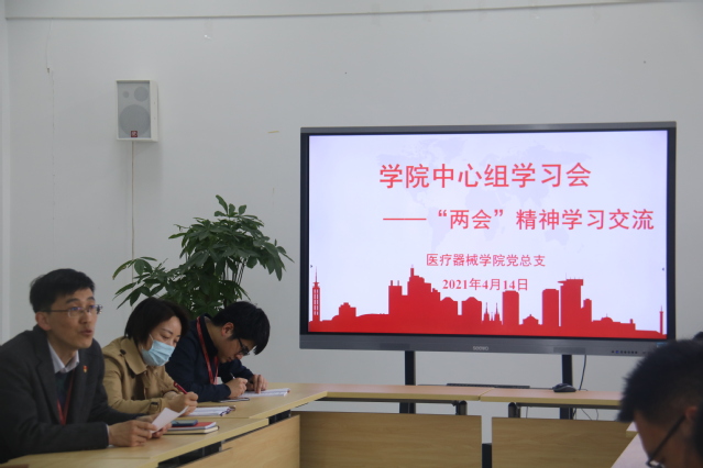 4月14日下午,医疗器械学院在新南苑18号楼506室围绕全国两会精神召开中心组学习会,学院党总支委员、各党支部书记、团总支书记、科级干部、工会主席、教研室主任等参加了会议,会议由学院党总支李晓欧书记主持。